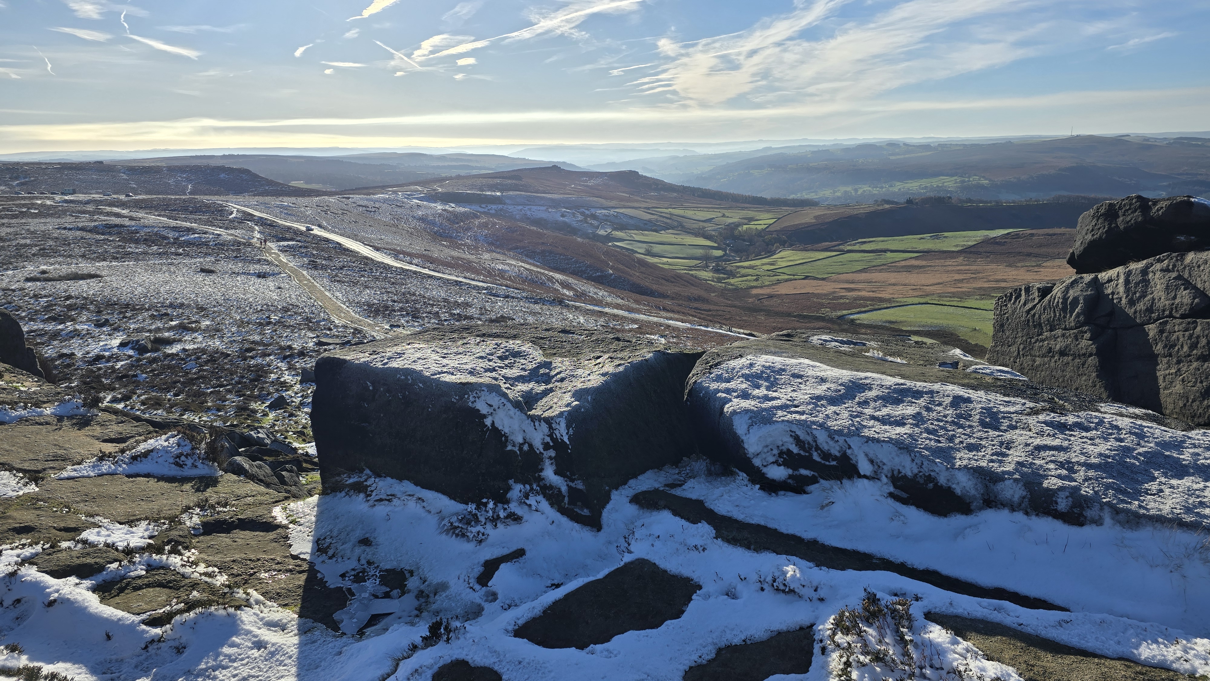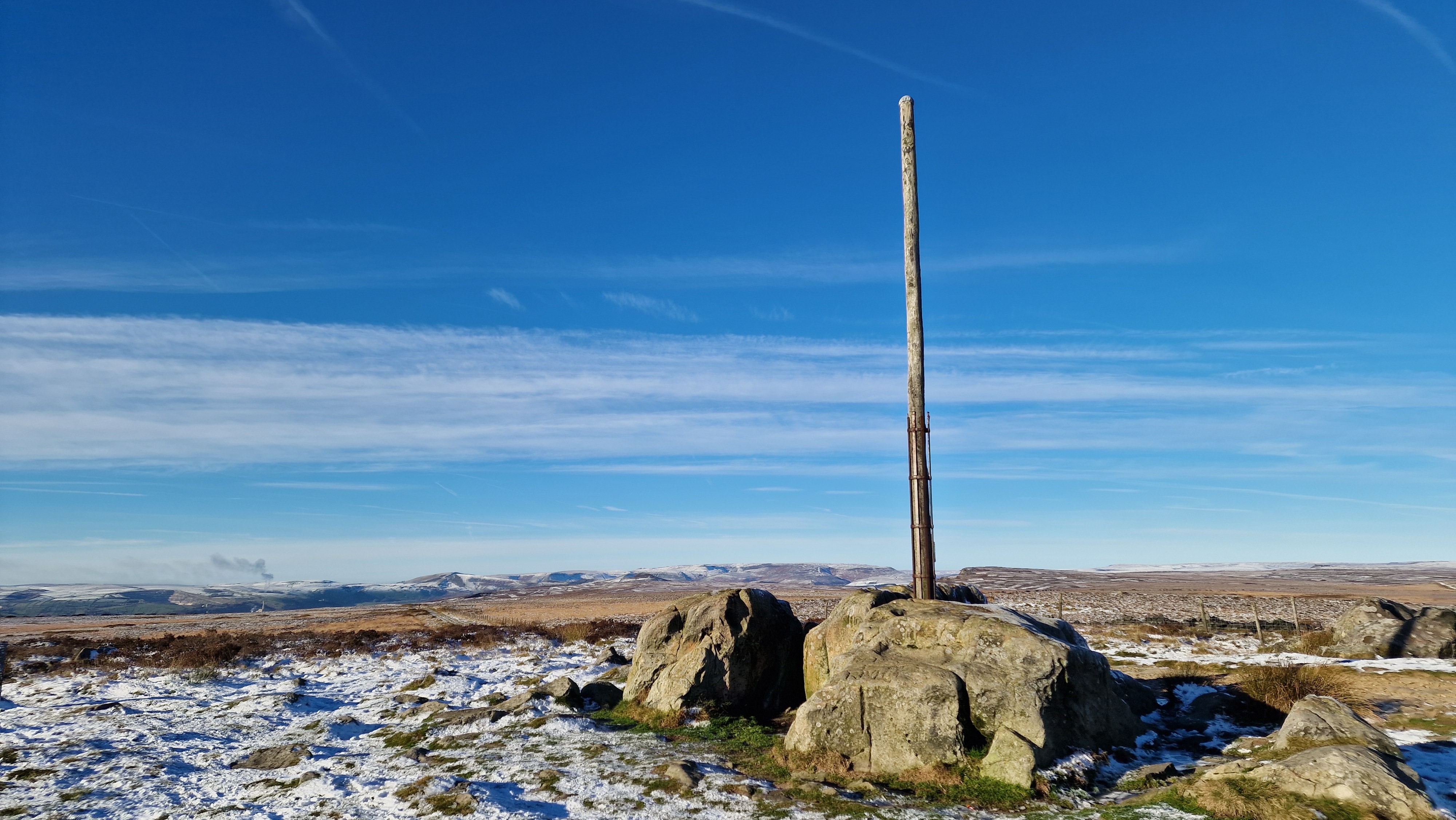 21st November 2025 Winter appeared in November 2025. A beautiful day with perfect blue sky but cold. A great walk to Stanage Pole and then onto White Path Moss, and back. Really clear with views of snow over Kinder.