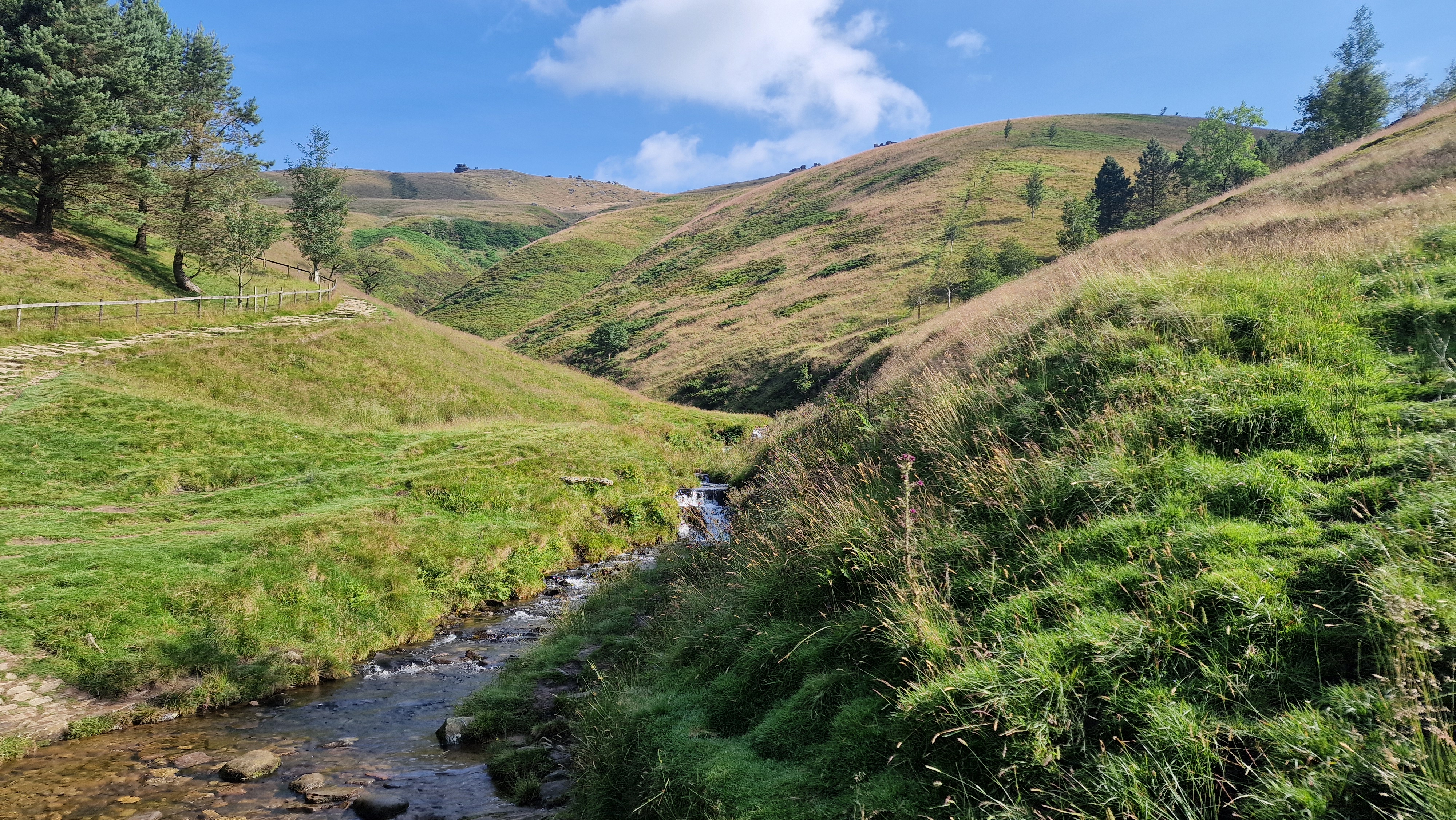 The large plateau of Kinder is one of the jewels of the Peak District, typified by steep climbs from the valley to the flat and peaty summit plateau. The Pennine Way starts at Edale as does this route, which takes the Pennine Way for the first part of the walk. Along the southern edge of Kinder there are many rocks with a variety of interesting shapes, many of which are named. Whilst the central part of the plateau is a bleak pet based moor, these edges are less so and provide interesting walking.