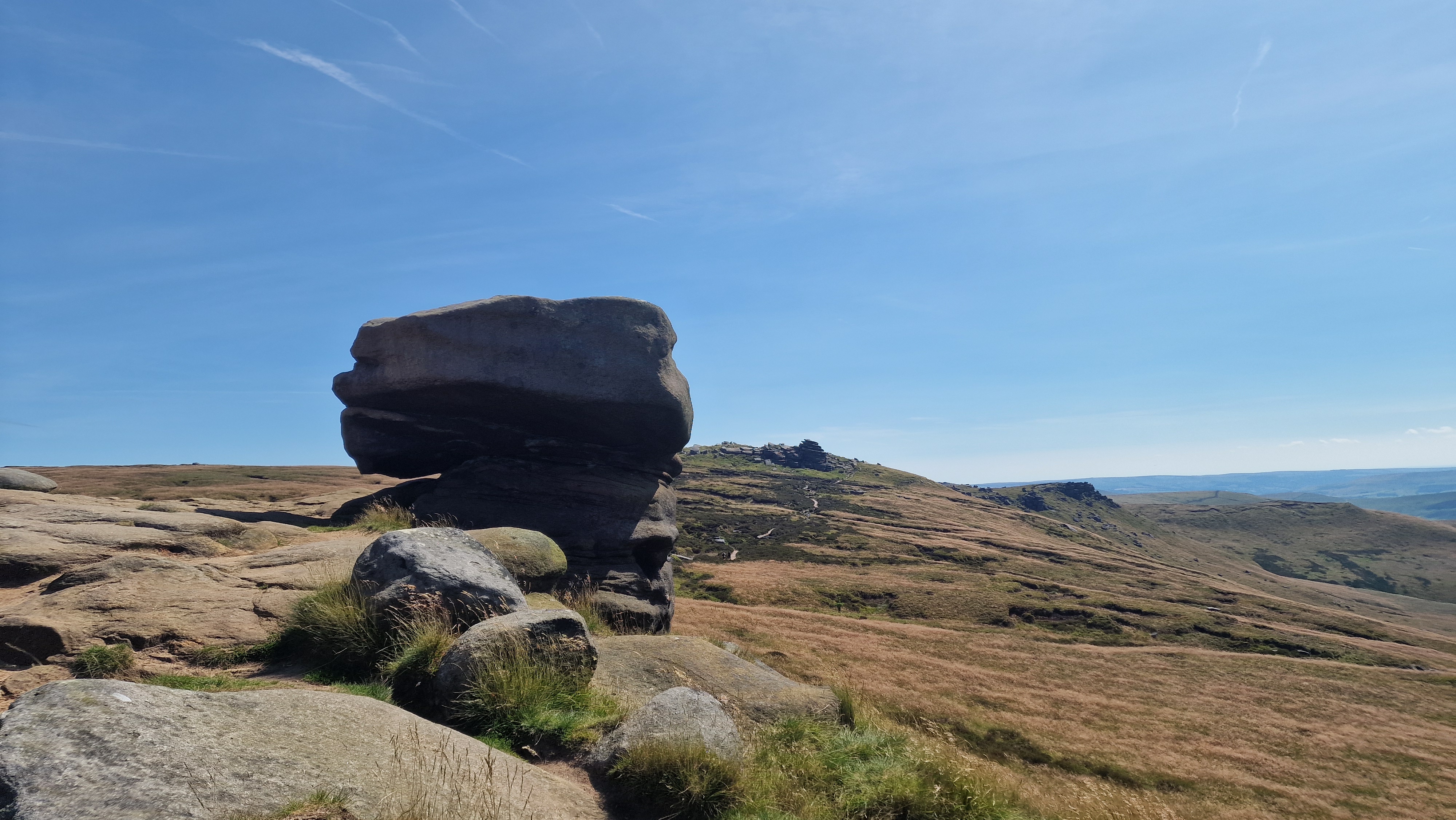 19th July 2024 A lovely summer day out on the southern edge of Kinder. The climb up Jacob's Ladder is steep and exhausting but the walk along the southern edge is spectacular with all the rock features. Most of the rock features stand out well in the sun. But the Woolpacks, which is a unique feature to this part of Kinder, is perhaps the best.