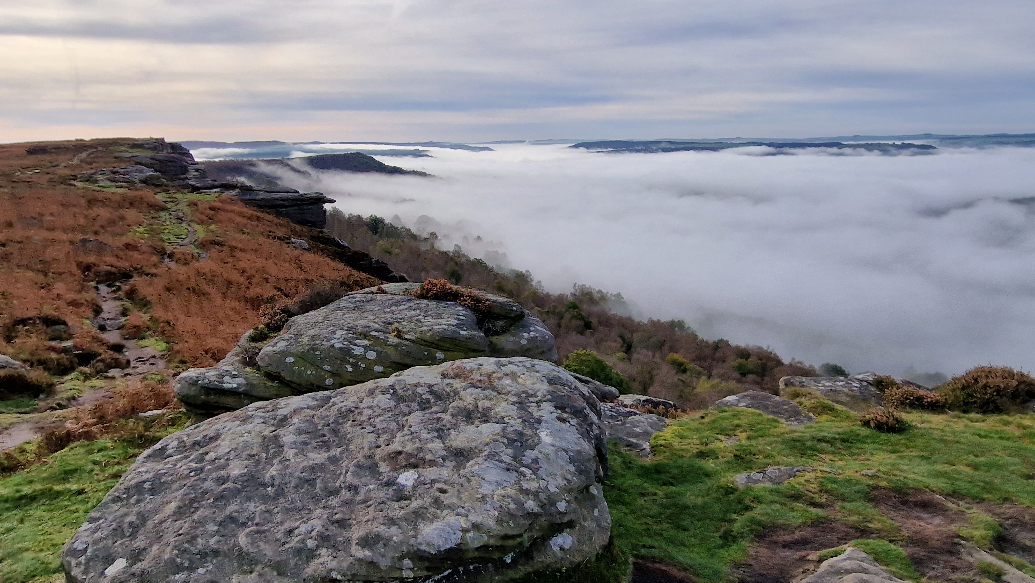8th November 2024 November has been a typical November with mist and little wind. Rather than attempting the full route, I parked at the Grouse Inn and walked along the edges. Because of the weather, I guess, there were few people out. It was still a great day, those that sat at home did not know what they missed.