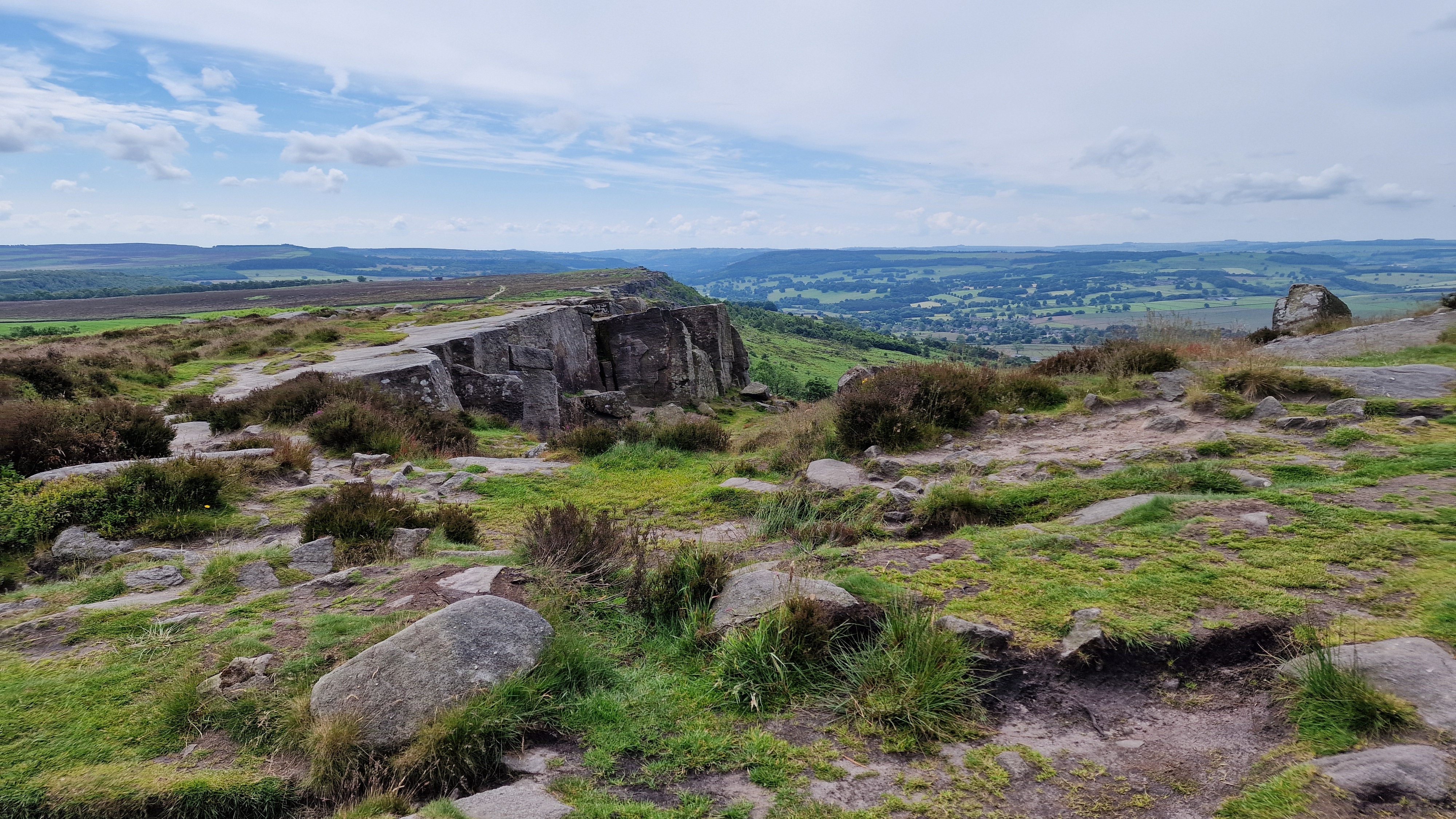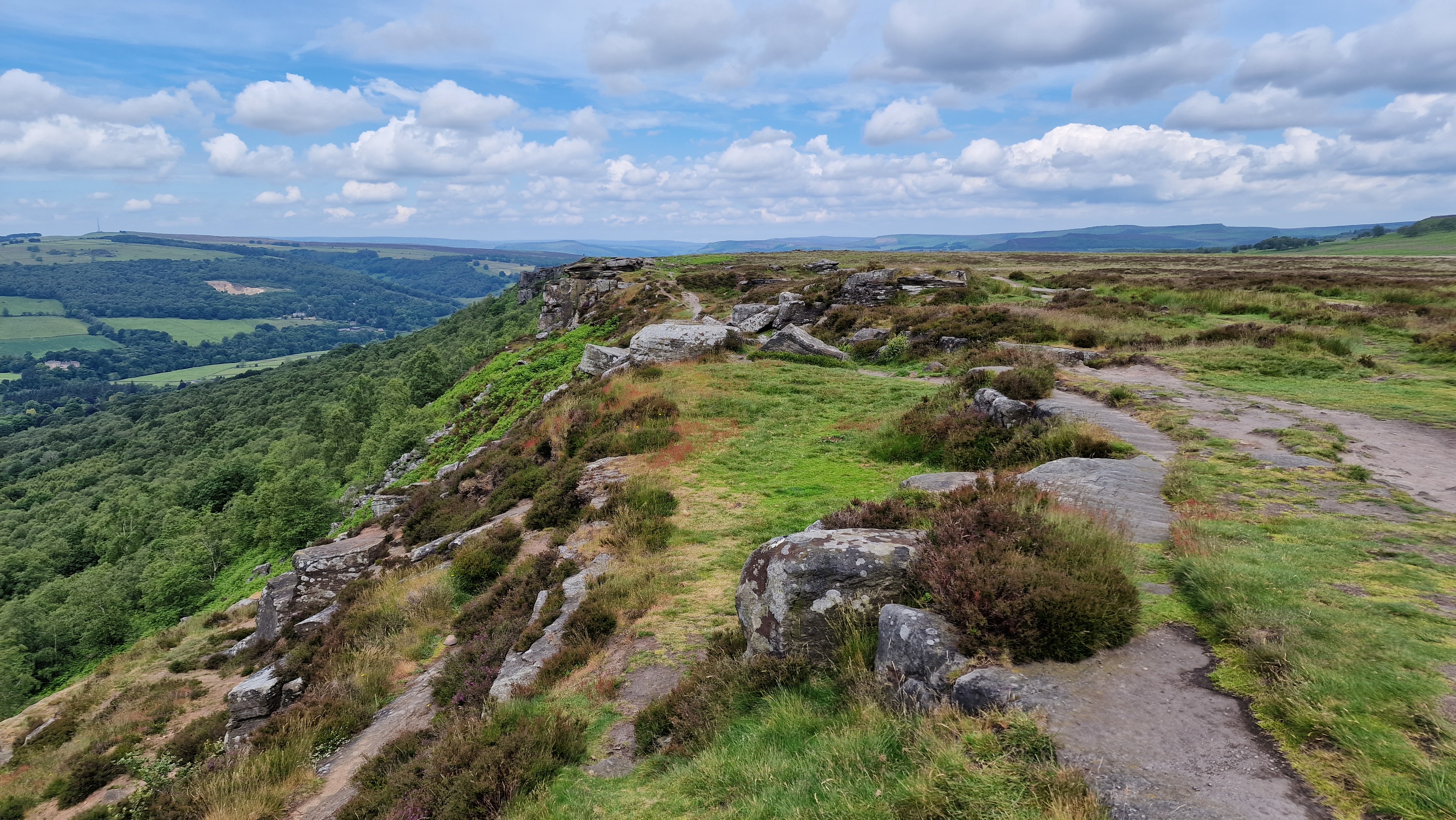 17th August 2019 Another visit to these edges and again the reverse way around. Great views in the sunny weather. Walking over White Edge seemed busy but the main traffic is on Curbar and Froggatt with walkers, mountain bikers and climbers. All out on this nice summer day.