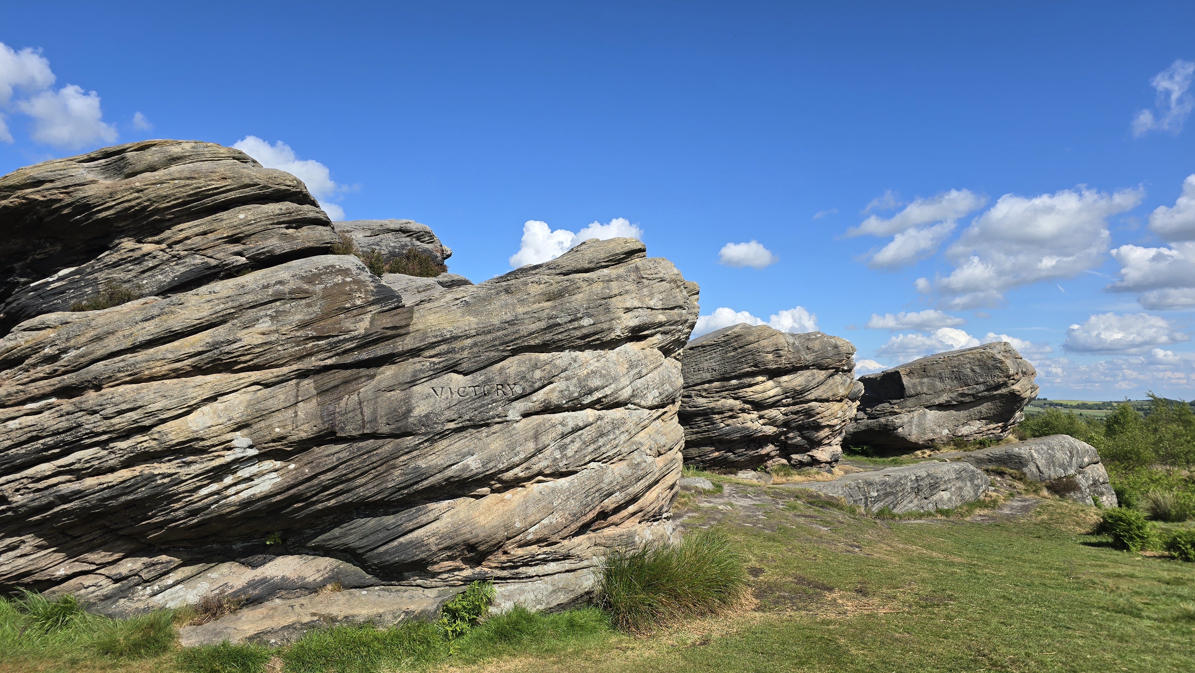 28th May 2025 For a change parked the car at roadside north of Birchen's Edge. Walked down Gardom's Edge, past the Robin Hood Pub and then up Birchen Edge to the monument and the 'Three Ships' rock formation. A lovely late spring day with great views over much of the Peak District