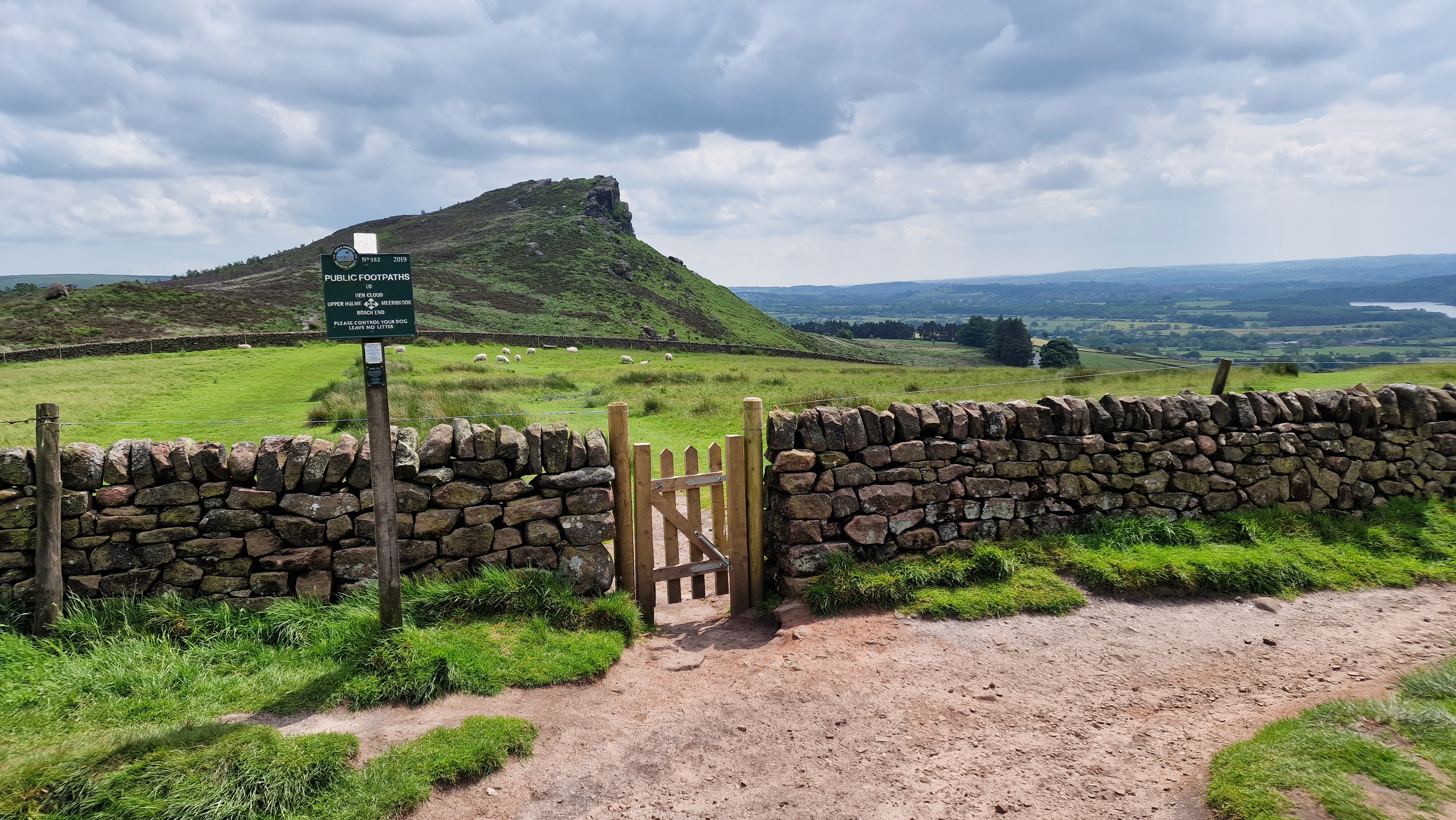 From the trig point walk along the path near to the edge of the crags. This path undulates but always with good views to Ramshaw Rocks in the east. Towards the south end the actual cliffs are high so remember to take care near to the edge. You may be lucky to see some climbers on these popular cliffs. At the end descend with care to the bottom of these crags, the path is steep and rocky. Continue onto the wall and the path to Hen Cloud.. Go through the wall by the gate and then the next wall, to reach the climb up Hen Cloud. This is a spectacular hill, triangular in shape. Climb to the top and take in the views over to the south west. Now turn around, descend Hen Cloud to the wall and turn left to reach the road at the car. (3.5kms. 80m. 1hrs. 10min.)