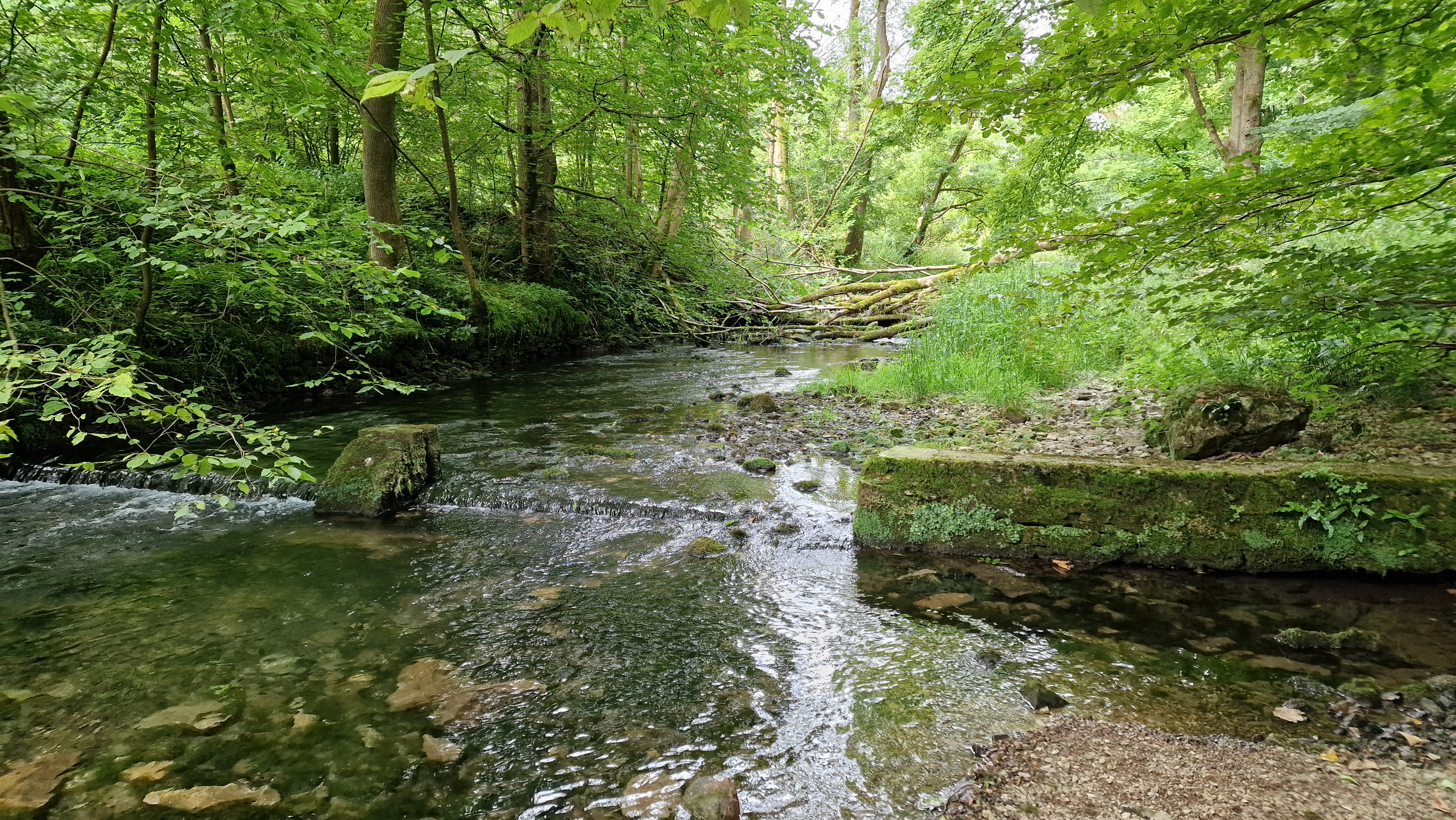 From Over Haddon, follow the road steeply downhill until a path is met on the right just before some buildings and a bridge over the River Lathkill. This is the path up Lathkill Dale. Follow this path through the wood with the large trees which at many times makes this a dark valley. Soon the end of the wood, and wildlife area, is reached and the dale opens out. From here there are significant limestone cliffs visible on the north side of the valley. A footbridge is reached but not crossed, as the route continues uphill. Underfoot the limestone blocks in this area are very slippy. The route continues to the road leading to Monyash. The route follows along the pavement beside this (not too busy) road to reach the village of Manyash. (6.5kms. 100m. 2hrs. 10min.)
