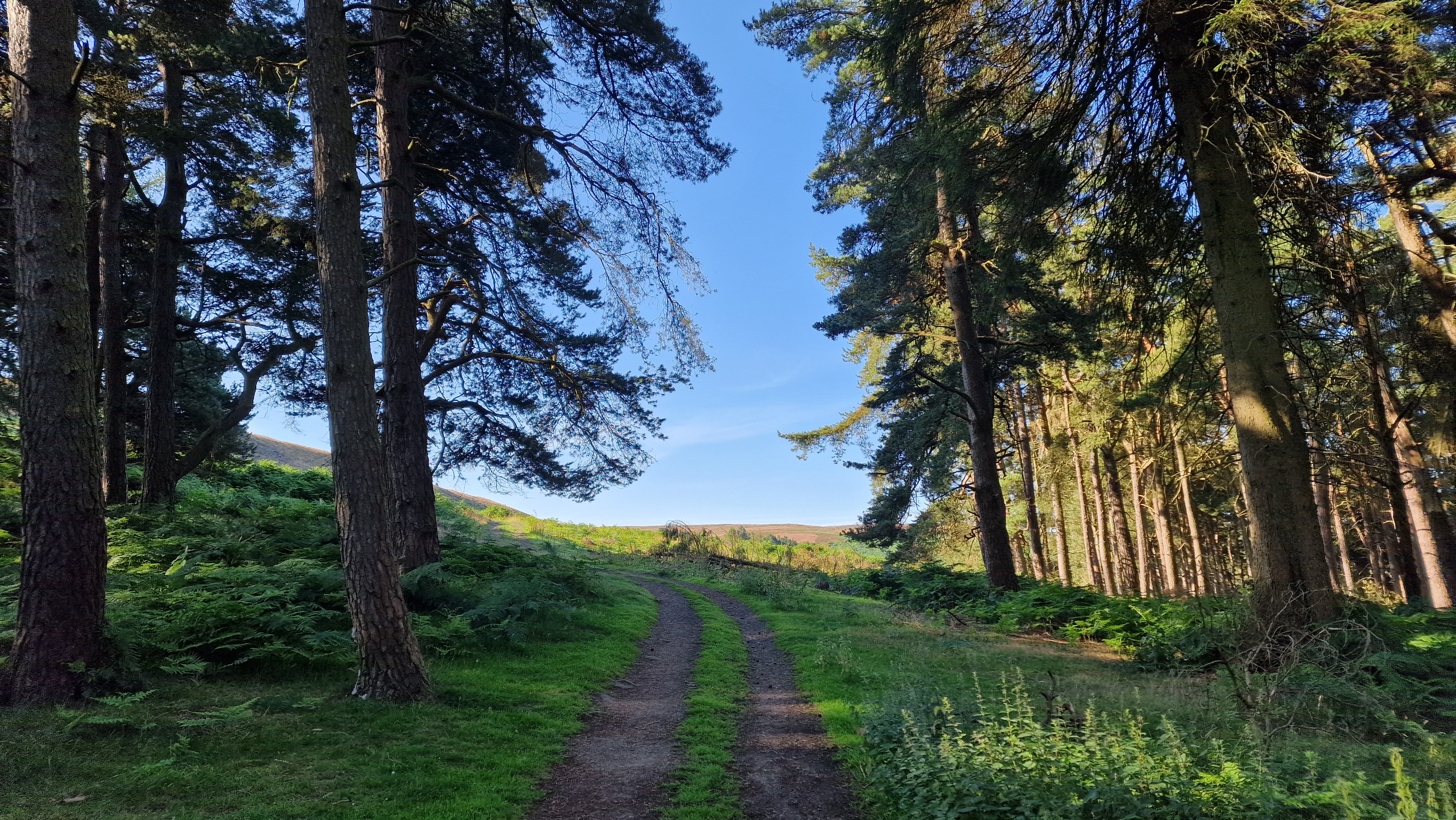 There is a path that climbs out of the lay-by on the southern side, this follows the line of the road to reach CutThroat Bridge. Following this path avoids walking along the busy road. Take the track south from CutThroat Bridge that goes under Hardron Edge. The track goes through the wood of Scots Pines. Continue through the wood, then in 100m there is a path that descends to Jarvis Clough. The mapped path inside the forest does not exist on the ground. Now follow the distinct path uphill around the line of broken walls and then over to Bamford Edge. Follow the line of the edge to get to the high point at Great Tor. The views along the edge are spectacular especially behind the walker towards Ladybower. There are also great views over to the west with Win Hill and downhill to see the village of Bamford. (3.5kms. 150m. 1hrs. 20min.)