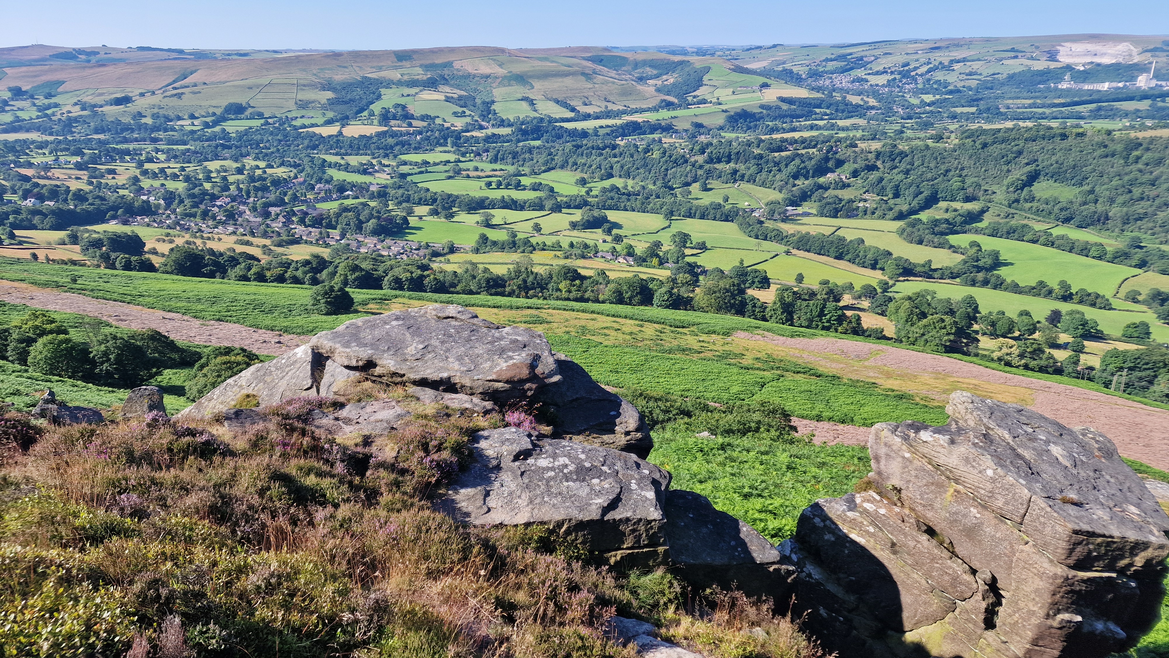 29th July 2024 The hottest day of the year so far and an early start with great blue sky. Bamford Edge is a popular place and often crowded, but early morning it was a nice quiet place. The views over to Stanage Edge to the east, and Win Hill to the west are good. However the view north to Ladybower are the reason why people come to this location.
