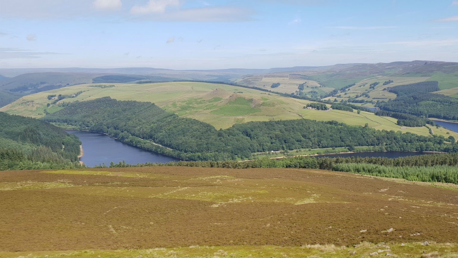19th June 2018 The day started out with clear blue skies. The views over the reservoir were fantastic. Later it clouded over. This walk was undertaken after a long dry spell and so the climb up Parkin Clough was drier than usual. Fantastic views over the Hope Valley when wandering along the ridge. A pleasant wander around the reservoir to finish off.