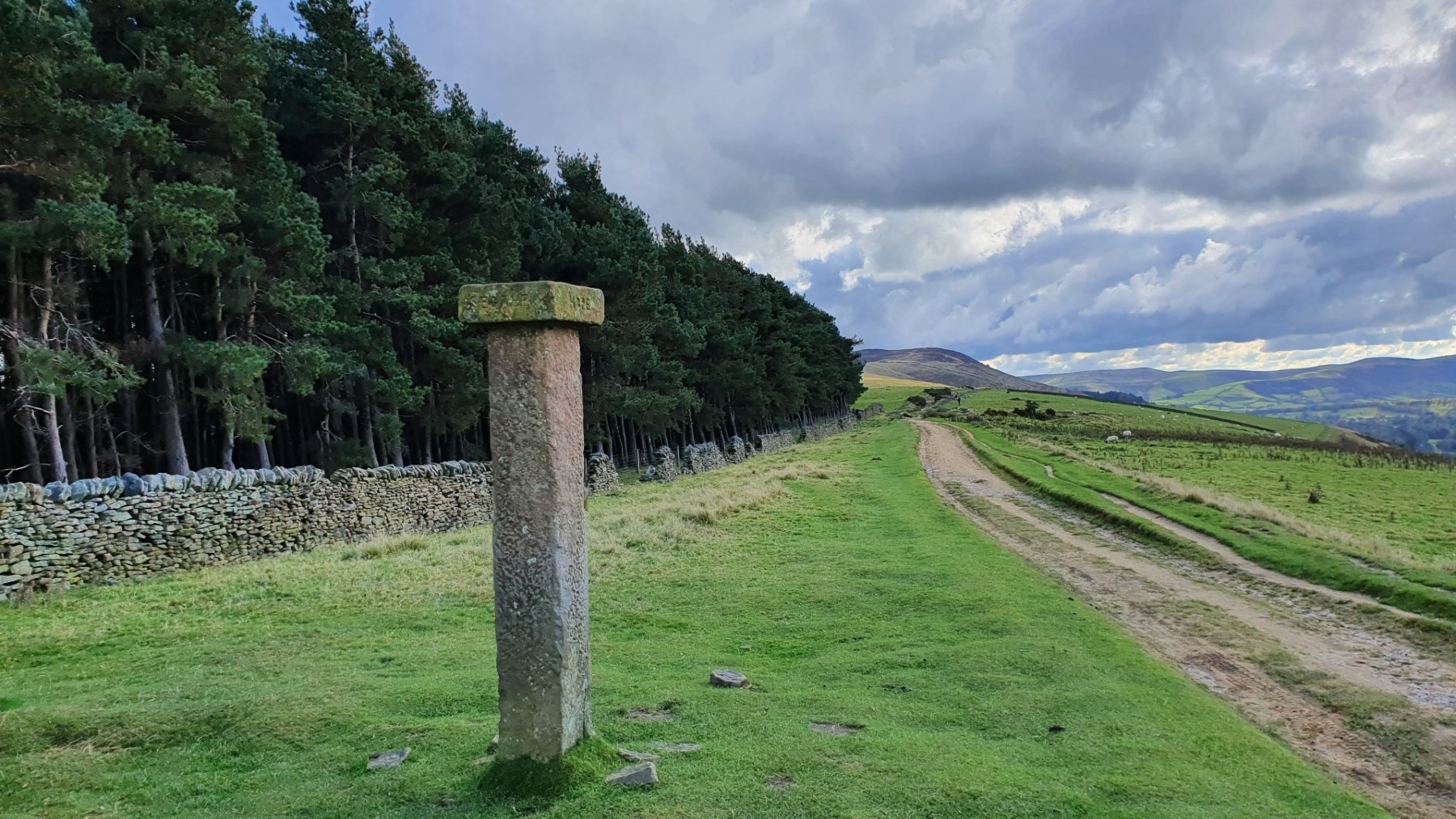 The route now follows along the ridge of Hope brink to Hope Cross. If continued, this ridge will lead onto Kinder. From the summit descend through the rocks to reach the path below. Follow this gentle descent in the direction of the forest on the north of the path. This is the grassy ridge of Hope Brink and the path leads to the side of the forest just short of Wooler Knoll. It is possible to cut short this route short here by descending to Ladybower Reservoir from this point, through the woods. However this longer route continues along the ridge, beside the forest edge to reach Hope Cross. Hope Cross points to Sheffield, Glossop, Edale and Hope itself. (4.0kms. 0m. 1hrs. 10min.)