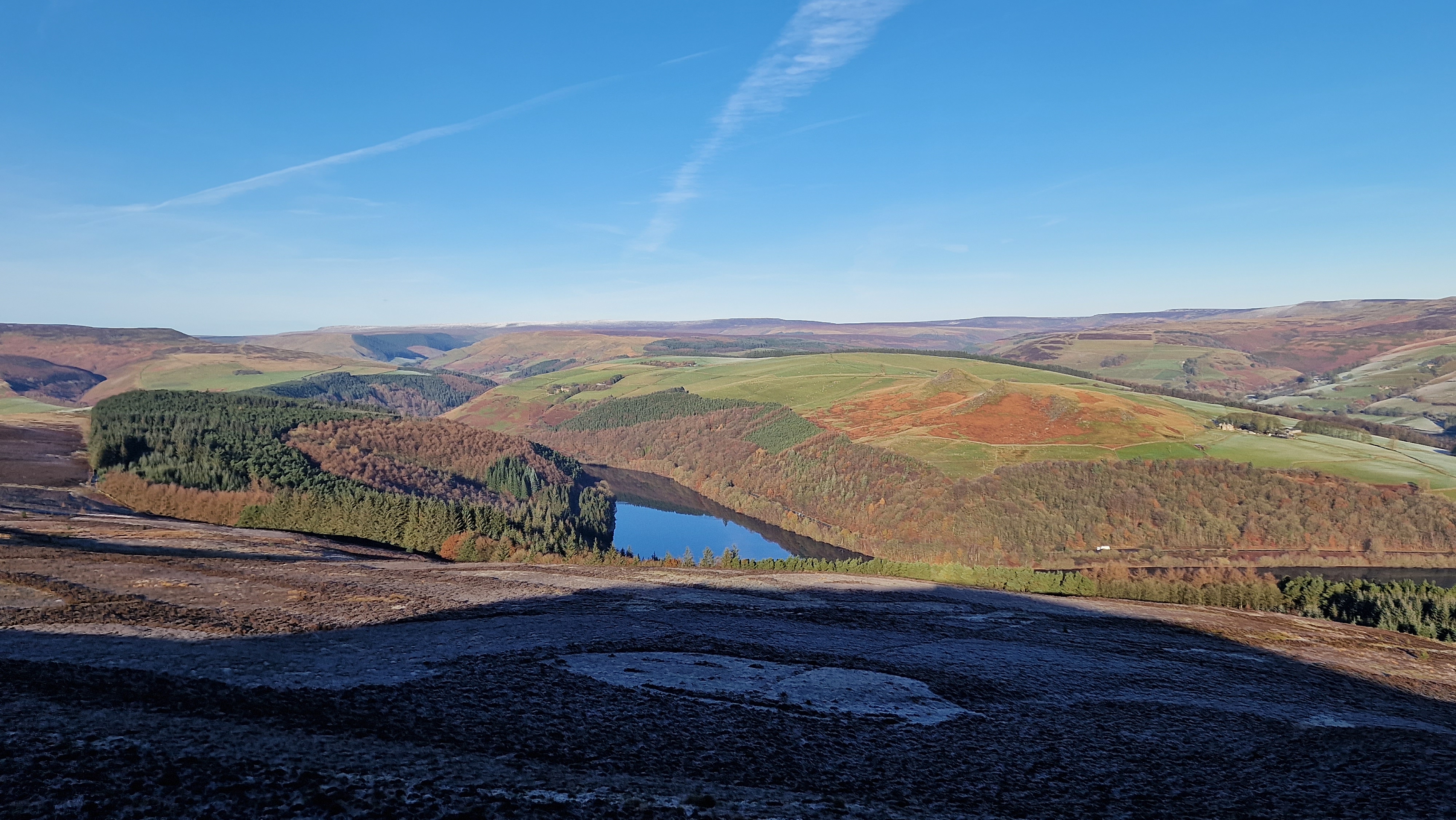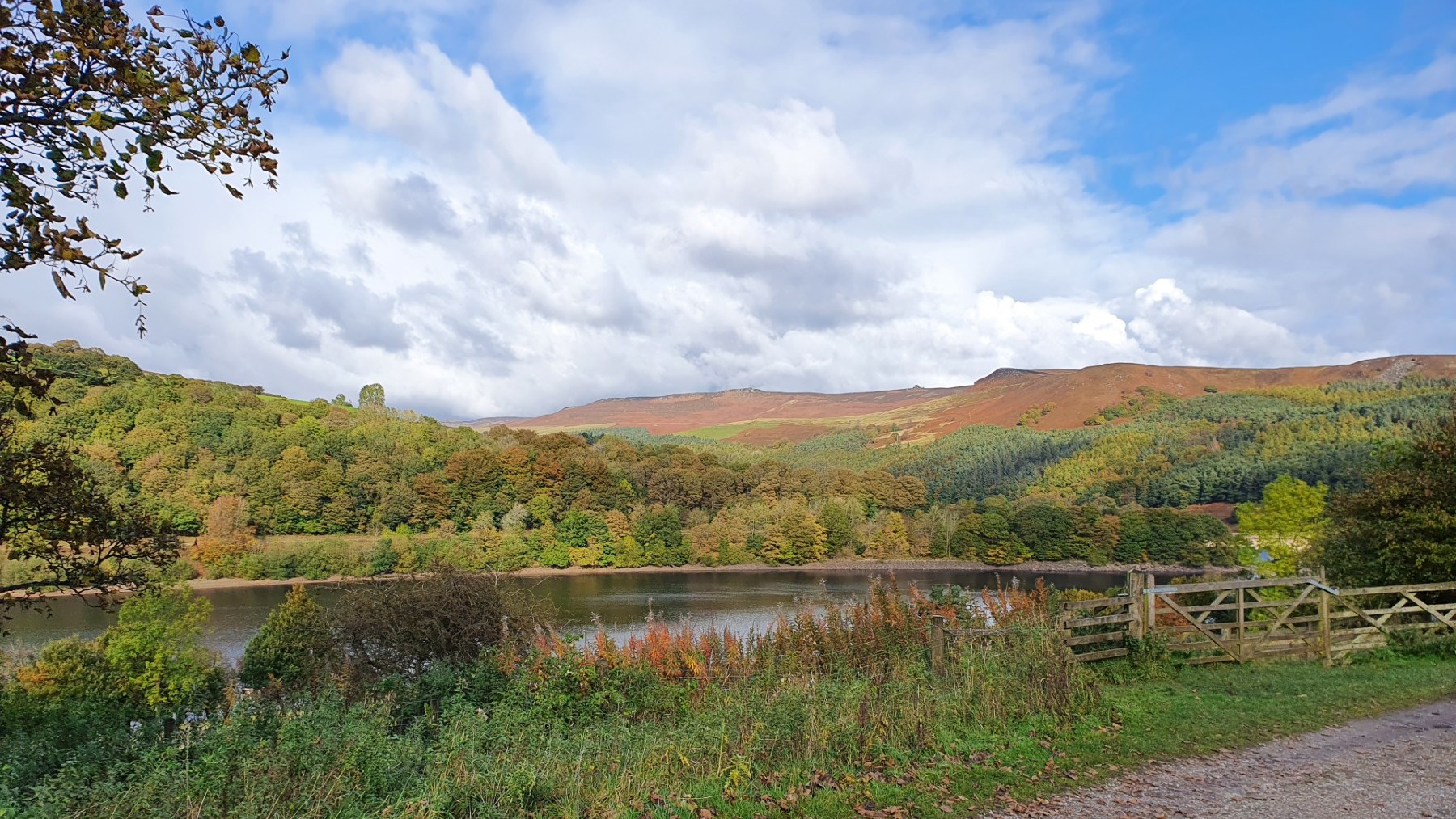 15th October 2020 A lovely autumn day with white clouds in the blue sky. Parkin Clough is always tough first out of the car but from then on the walk is great. I really like sitting on the broken wall on Wooler Knoll with the view down the Edale Valley. A peaceful place on a autumnal Thursday. The walk finished with a quiet wander along Ladybower reservoir; particularly quiet as the A57 is closed for road works.