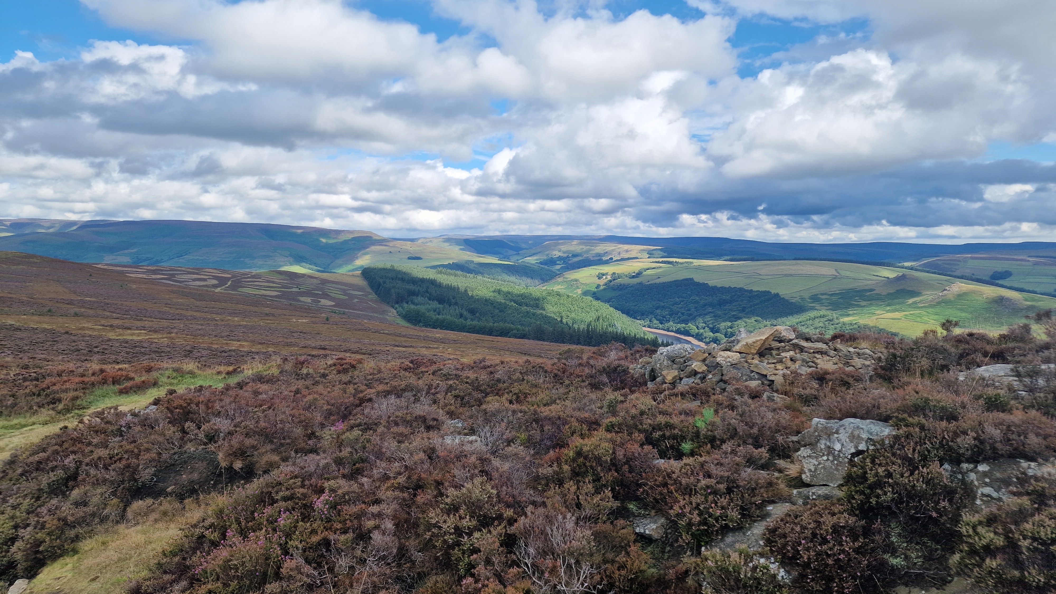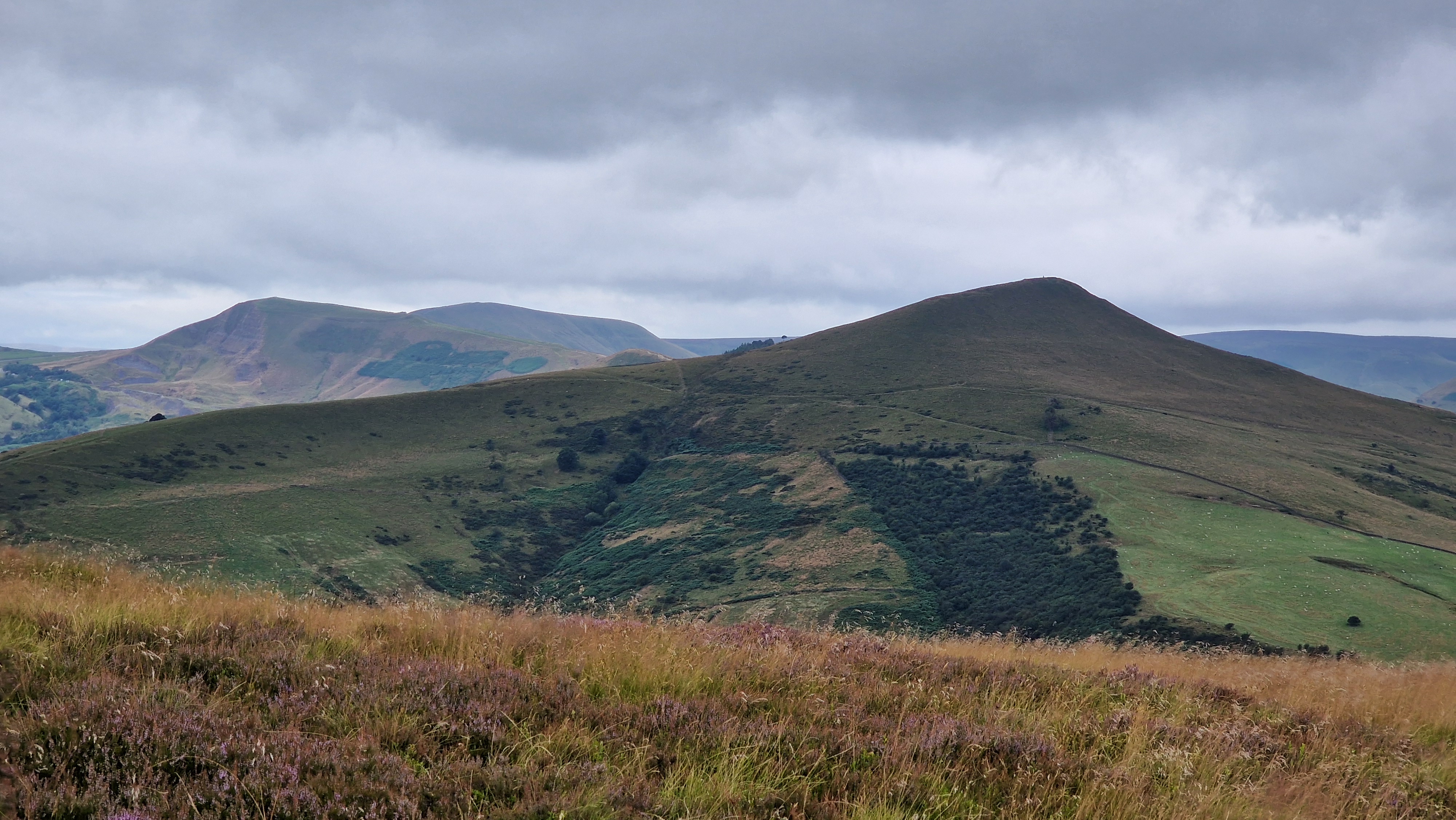 5th August 2024 A cloudy, windy and colder day to start with after a number of very hot summer days. Whilst spoiling the views, the walking was more pleasant. The views from Win Hill and the ridge never fail to impress; especially the view to Lose Hill, Mam Tor and the Edale Valley. Good to sit with a coffee on the broken wall and see the trains rushing up and down the valley. Mid summer and not a busy day out on Win Hill.
