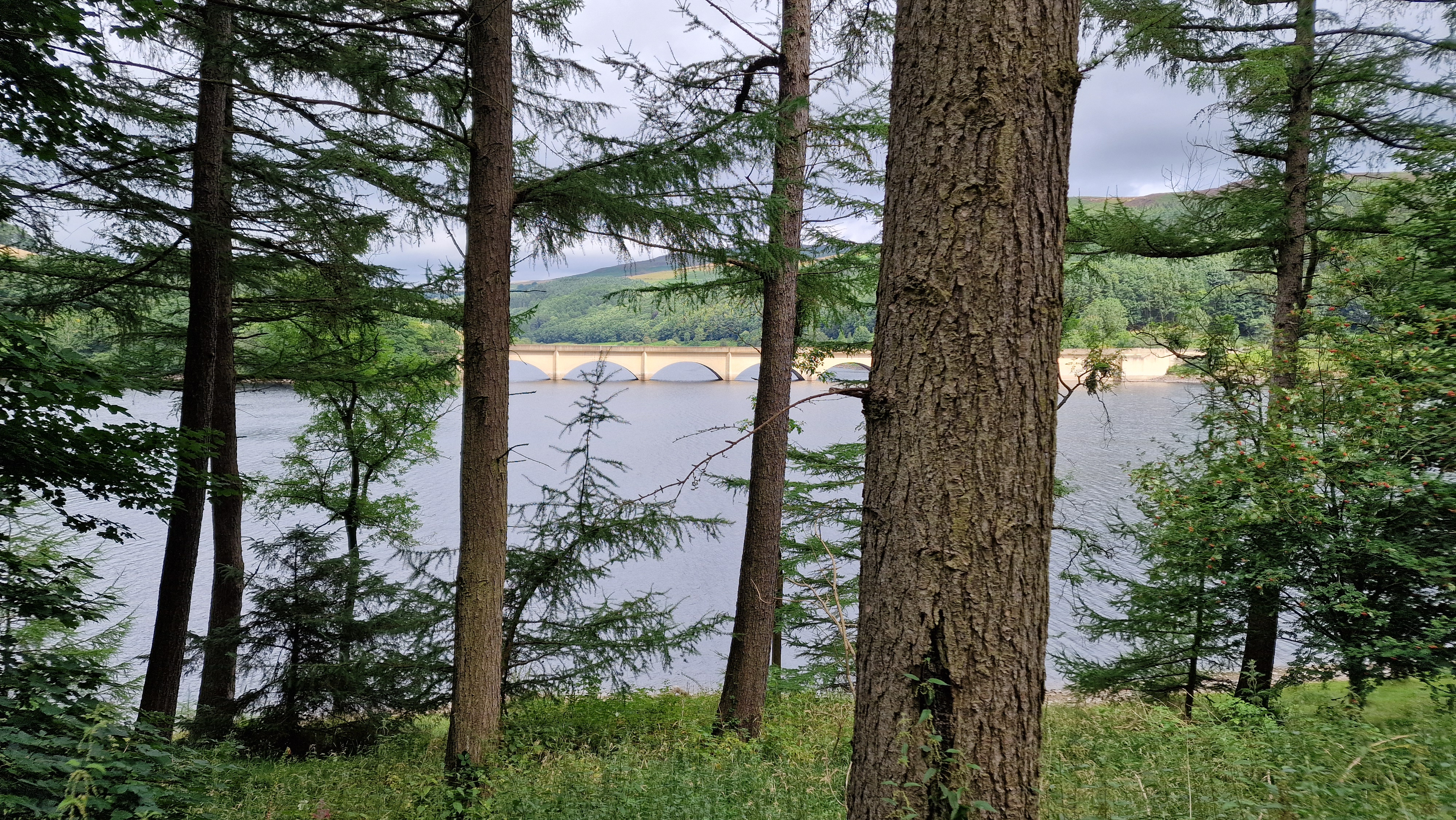 From the gate, stile and wall complex at Hope Cross, use the stile to get into the forest and follow the obvious path that descends through the beautiful avenue of trees. Soon this path takes a sharp right and it is followed all the way down to the reservoir. About half way down the wide path becomes thinner but due to some work by the MTB community this is an easier path to follow than previously. Follow the path all the way to the track alongside Ladybower Reservoir. There is a good wide track around Ladybower Reservoir which is followed east back to the dam. This is a nice walk around the reservoir, sometimes in the trees, sometimes with views over to Crook Hill, or over to Stanage. Towards the end, the track bends around south, to reach the Ladybower Dam. Cross the dam, across the road and then follow the path to return to the car park. (6.0kms. 20m. 1hrs. 50min.)