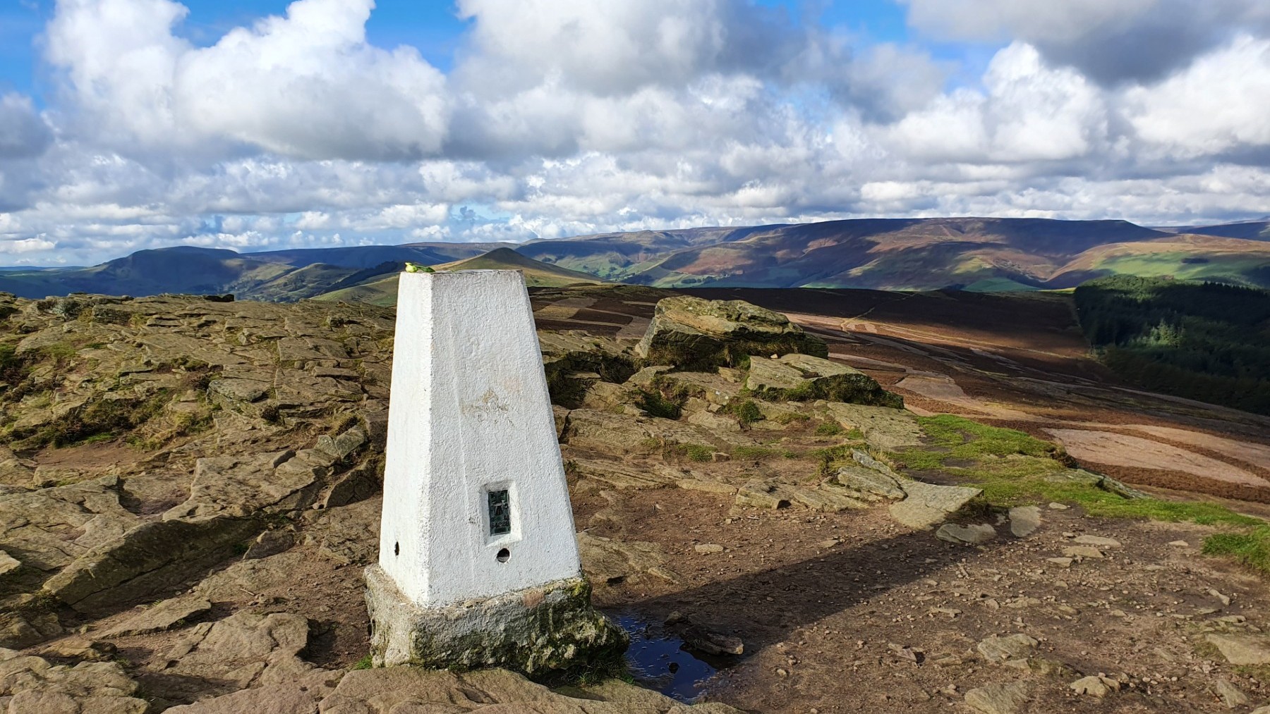 There are 88 trig points within the boundary of the Peak District National Park. Whilst some are on top of the hills of the Peak District, others are on other prominent points. For the Peak District walker, one thing that can be guaranteed (on a good day) is that there will be a good view from the trig point after all this is why they were originally placed. A number of people see this list of 88 trig points as as a traget - let's try to visit all 88 trig points.