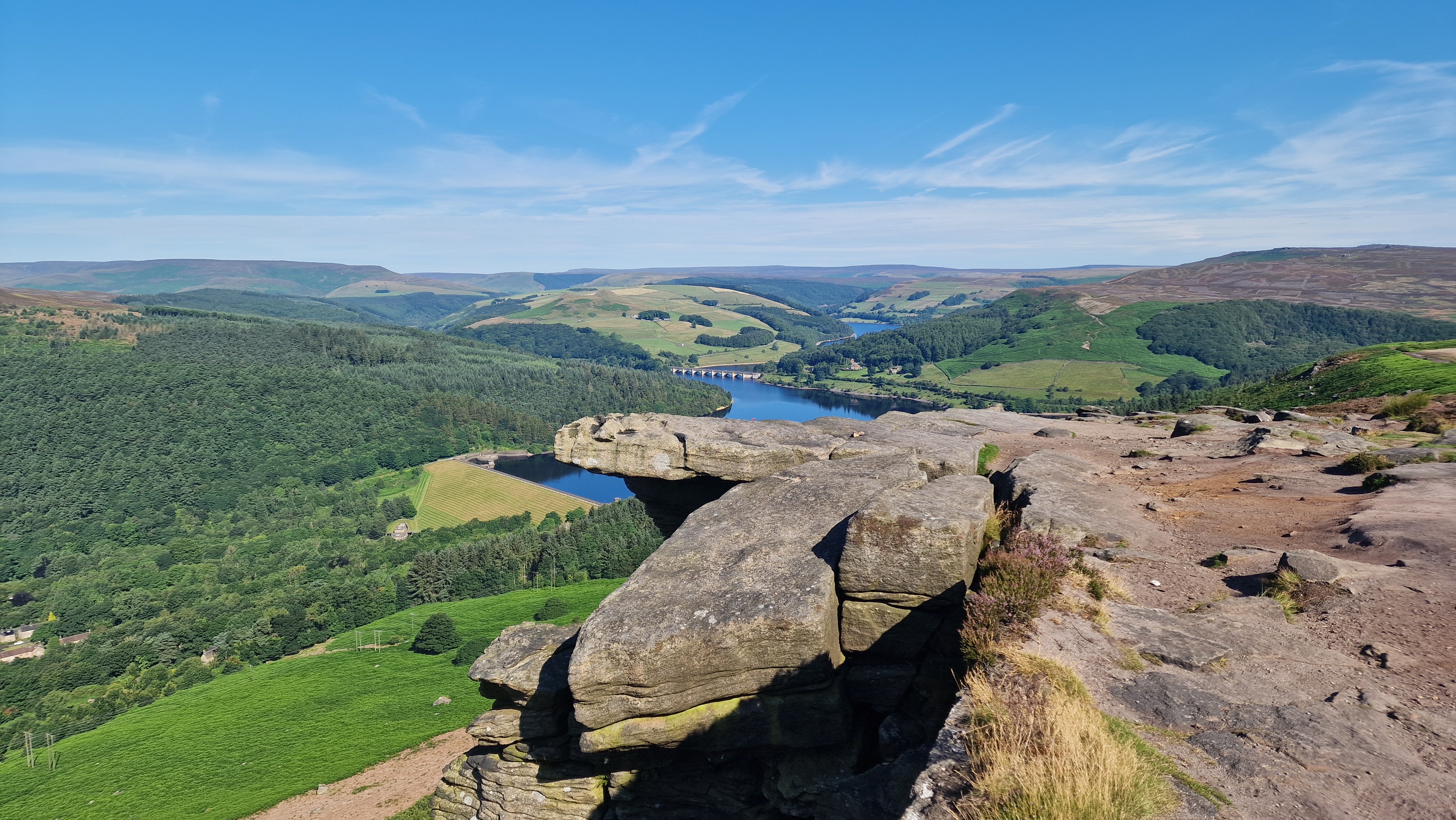 The Gristone Edges run along the eastern boundary of the area, from Chatsworth in the south to Stanage in the north is a highlight of the area. The magnificent sweep of Stanage Edge viewed from Hathersage is one of the most iconic views of the Peak District, indeed the UK.