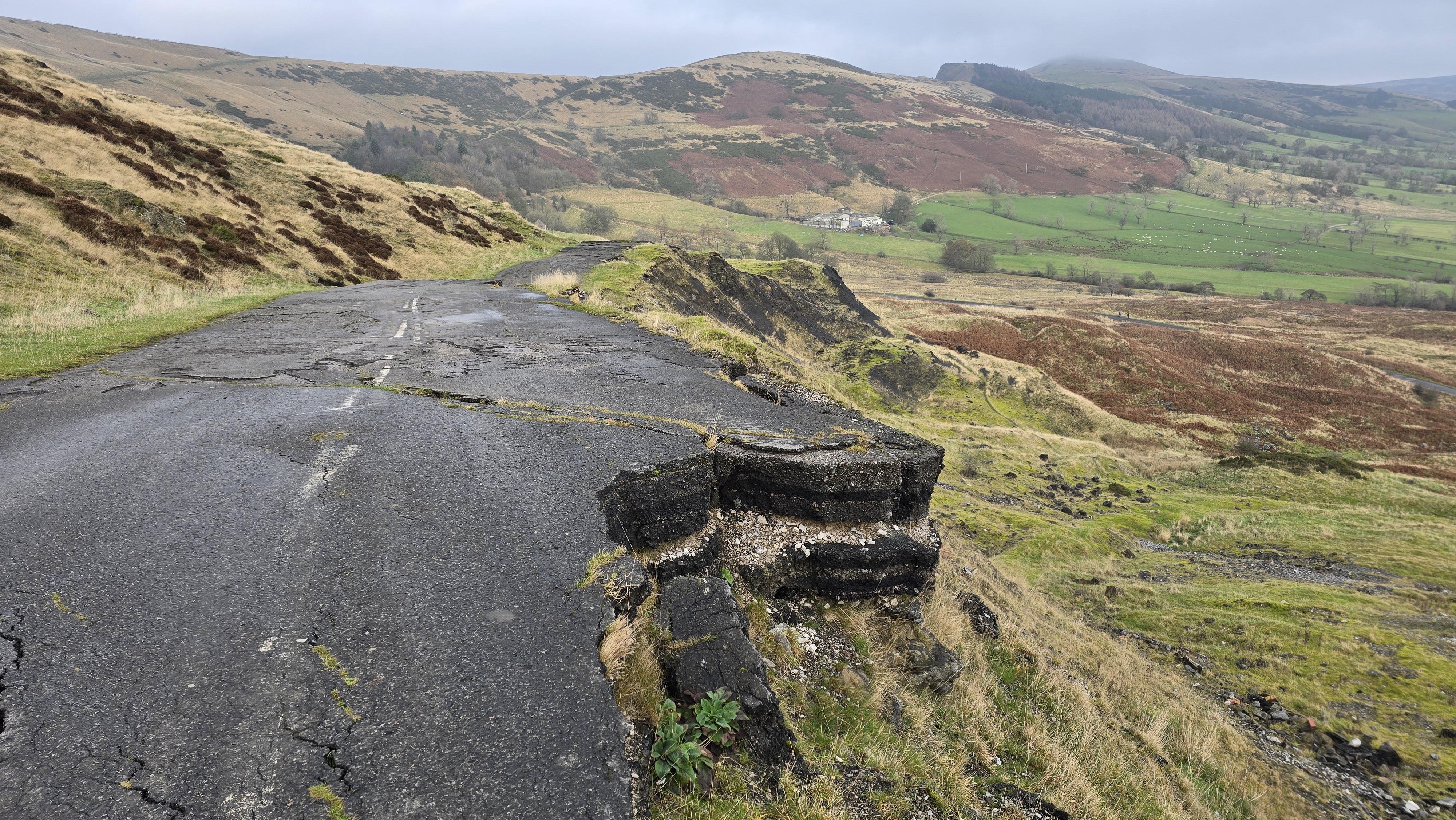 3rd January 2020 Mam Tor is one of the most popular hills in the Peak District and today was no different despite the cold damp and wind later on. Very slippy underfoot; do they make special mud here? Decided against Cavedale as this is slippy at the best of times and it would be treacherous today. Walked down the old road. Surprising how much it has slipped since the closure in 1979.