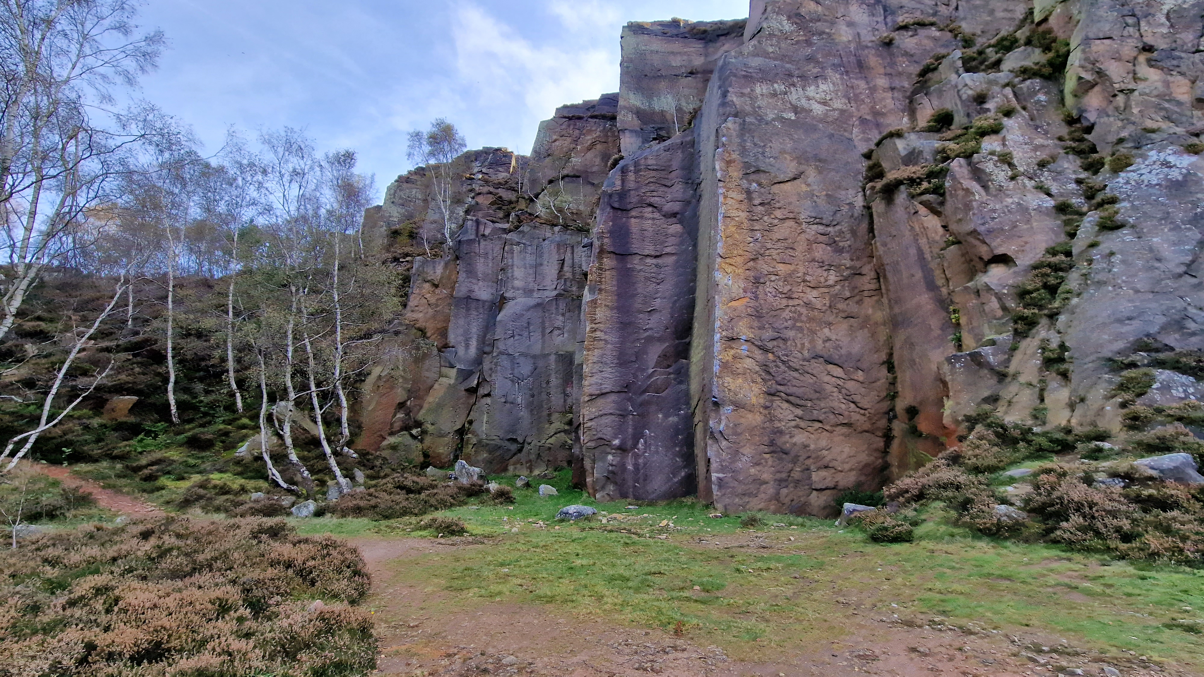 18th October 2023 A great walk for a fine autumn day. The size (height) of the crags at Millstione and Lawrencefiled never fails to impress. They are quarried rock, and not natural but nevertheless impressive. Great colours in Bole Hill wood. this is a popular area but on this midweek morning there were few people about.