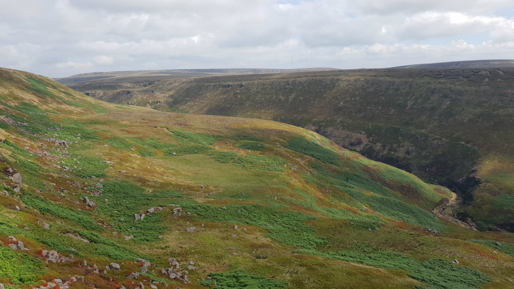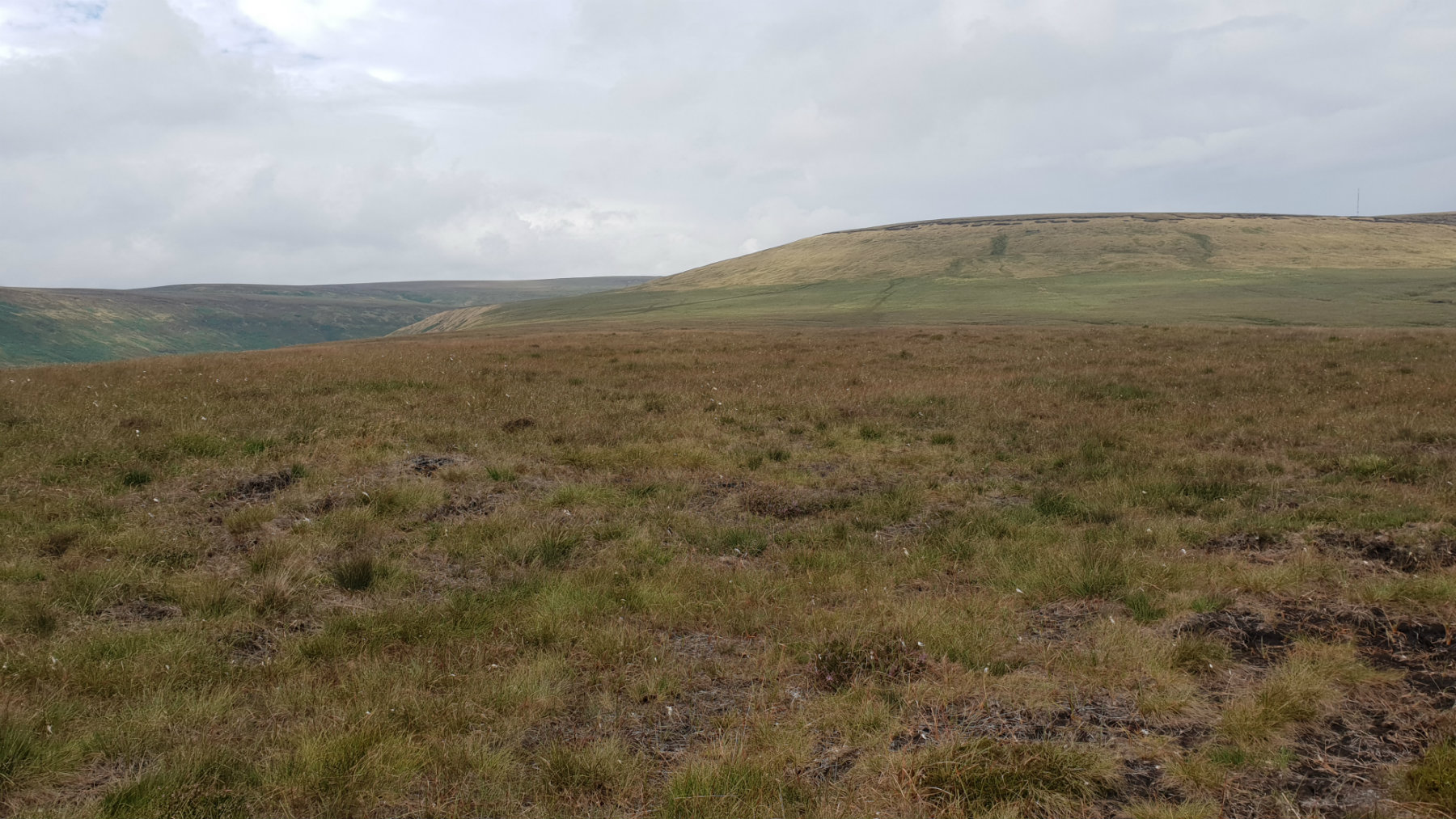 25th July 2018 Summer 2018 has been exceptionally dry and this was a good opportunity to do this walk. The streams were flowing but not full so the many fords marked were just a simple step over. The moorland was bone dry; exceptionally no need for gaiters. The Pennine Way route is quite busy but there was nobody on the return route. Soldiers Lump trig point had been newly painted, white, and now stands out significantly from the surroundings.