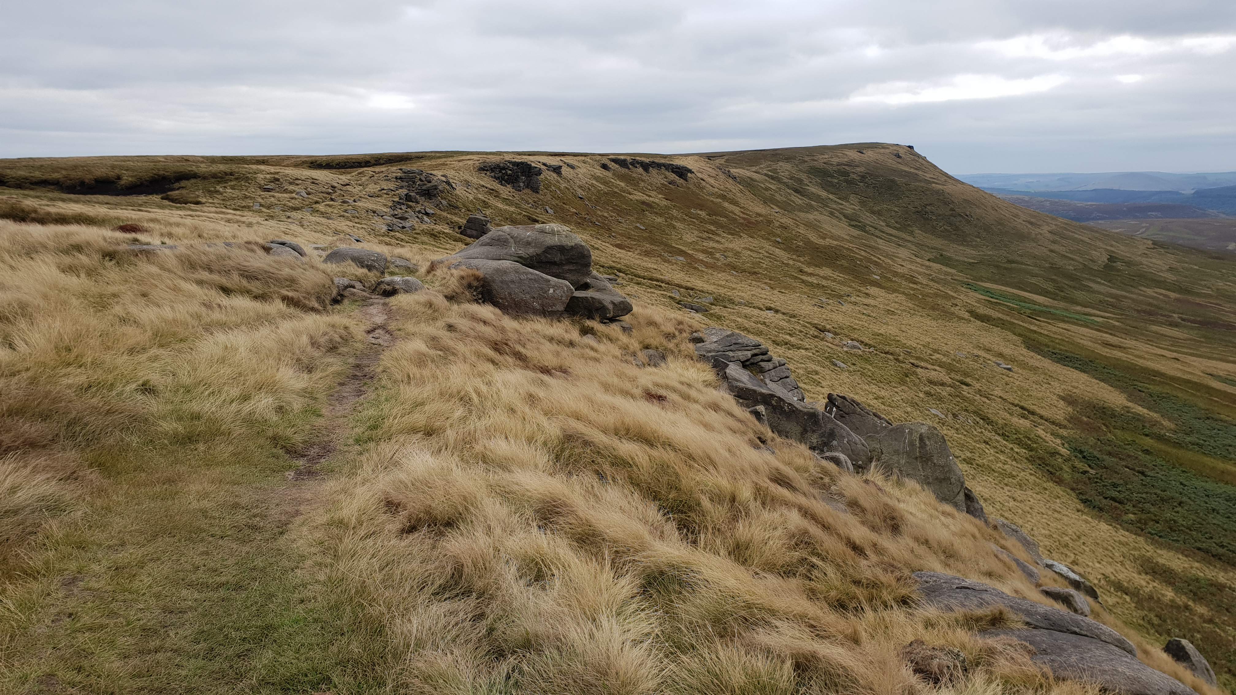 High Stones is the high point of Sheffield and South Yorkshire. It lies within Howden Moors along Howden Edge. This is a remote moor well away from the crowds and the walker is likely to be on their own here. Howden Moor in general has a reputation as being wet and boggy but the area between High Stones and Margery Hill has an excellent path; as are the access paths up and down on this walk. This hill gives great views over Bleaklow, Kinder and east over most of South Yorkshire and beyond.