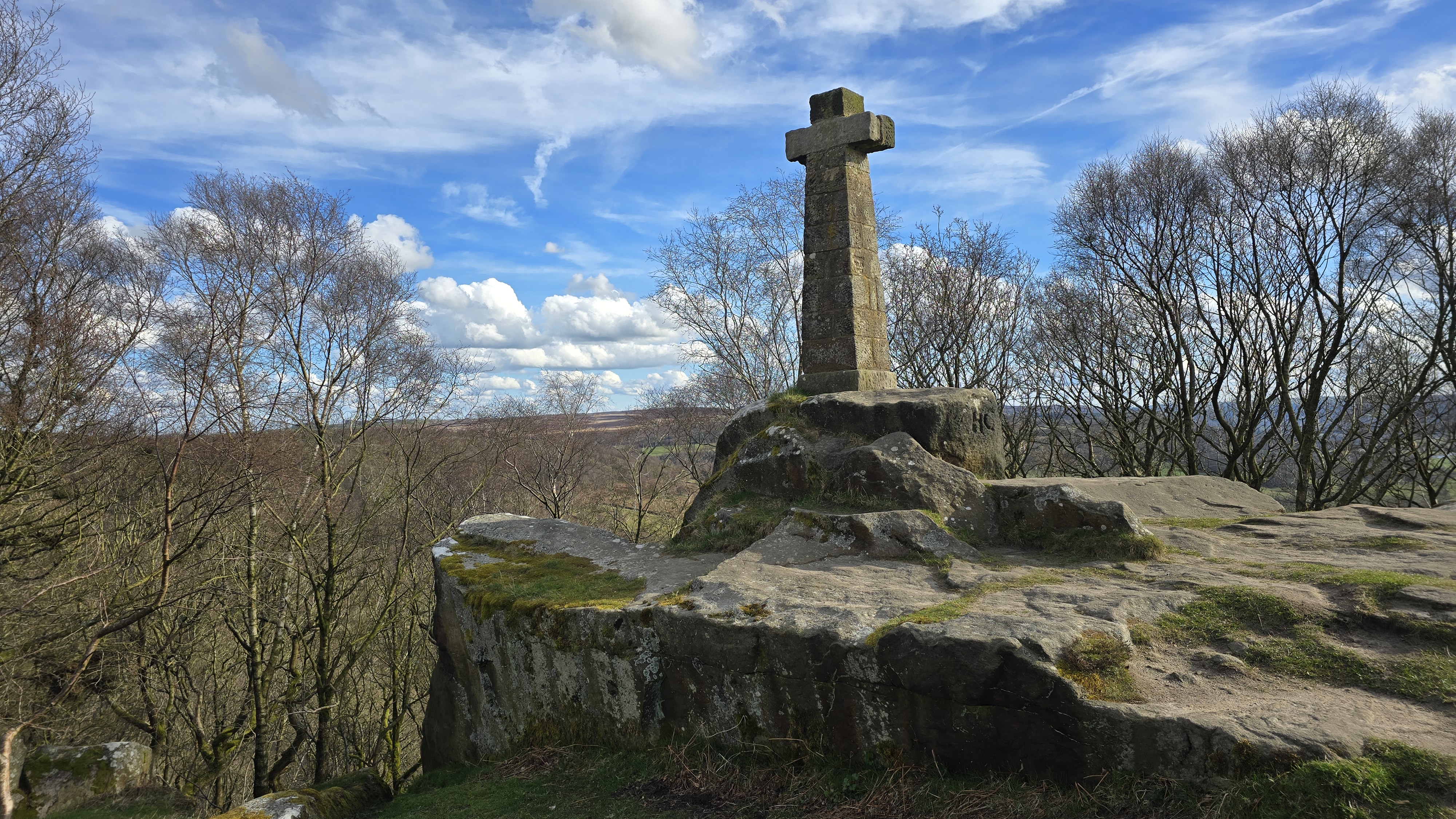 27th March 2025 A lovely spring day but with a bit of a wind. I did this walk in the opposite order; Curbar edge then Baslow. It was nice to sit on the seat by Wellington Monument for a cup of tea. This is only a short walk but well worth getting out. There are great views of the Peak District from these edges including the villages of the Derwent Valley, the edges themselves, and further beyond.